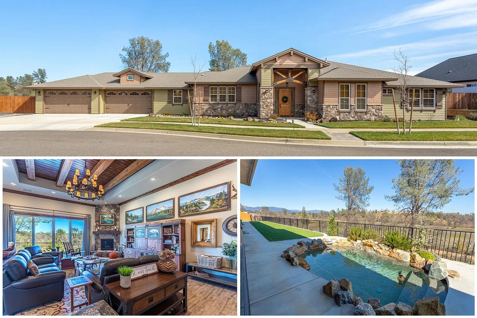 There are no comparable homes for rent in Redding right now! This home has a pool and INCLUDES pool service and monthly yard maintenance (a value in excess of $500/month). The owners have invested more than $70,000 in custom features that include solid wood doors & trim, ceiling with wood planks and beams, flooring, barn doors & 8' solid wood doors. All of this is located on a large lot (.45 acre) in Highland Park. The open floorplan includes a huge great room & kitchen, gas fireplace w/ thermostat, custom showers, soaker tub in primary bath, large laundry room and attached garage. The backyard has a "SPOOL" (yes, that is a spa & pool in one!) where you can take in the incredible greenbelt view that the property backs up to. Solar has just been installed so the new resident will benefit from low utility bills, too!
